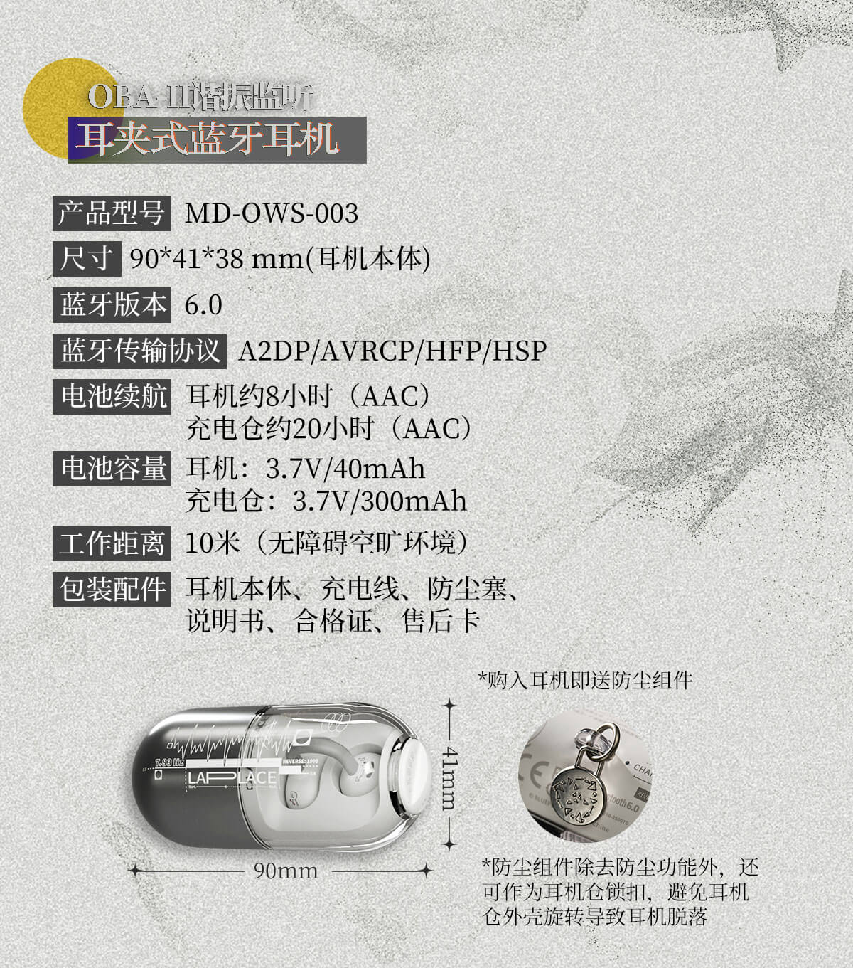 Gift Box Set Contents: Clip-On Bluetooth Earbuds, Acrylic Phone Stand, Earphone Pouch, Sticker, Lanyard, Dust Plug, Acrylic Charm*1 (You will receive the character charm corresponding to the gift box version you choose.)